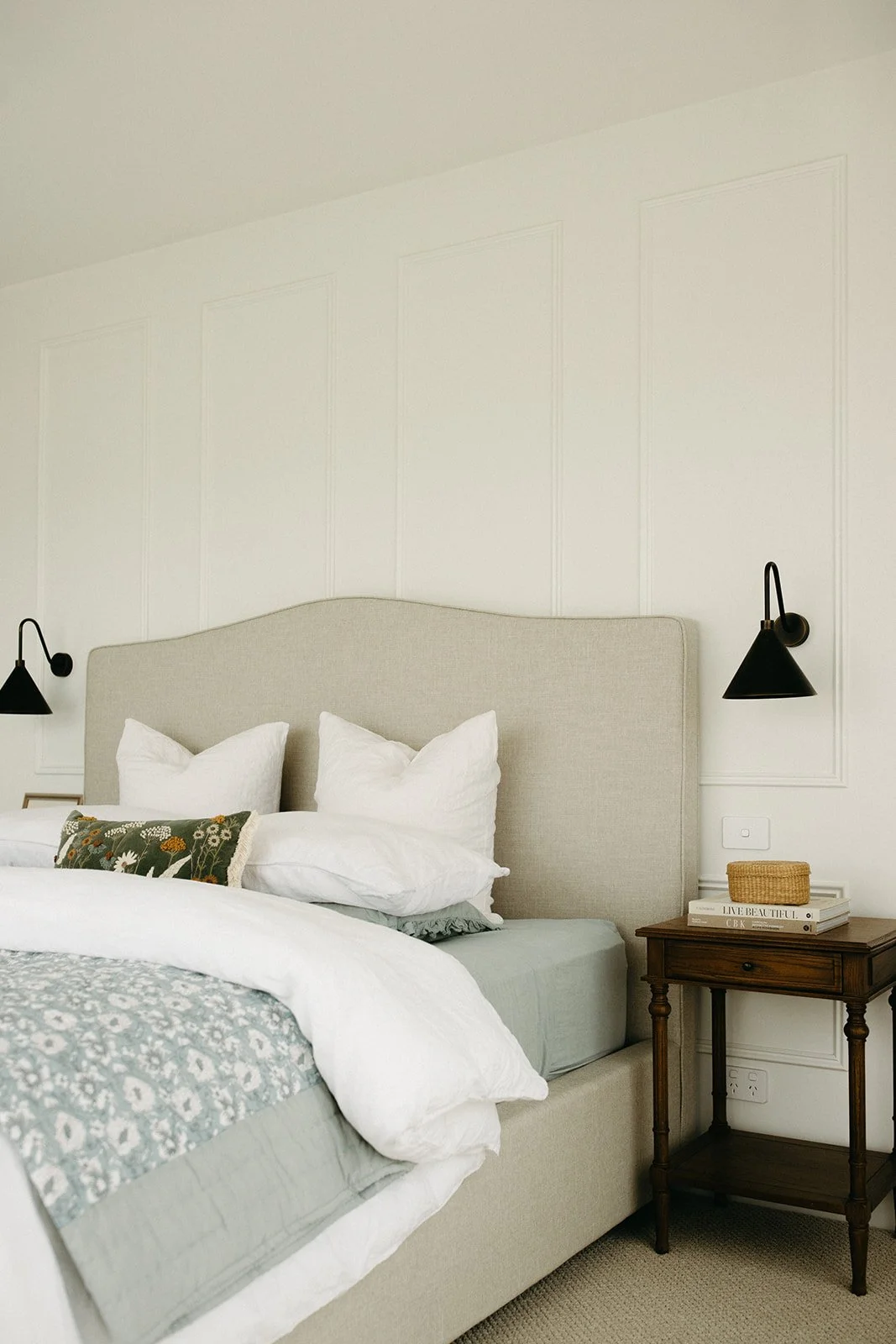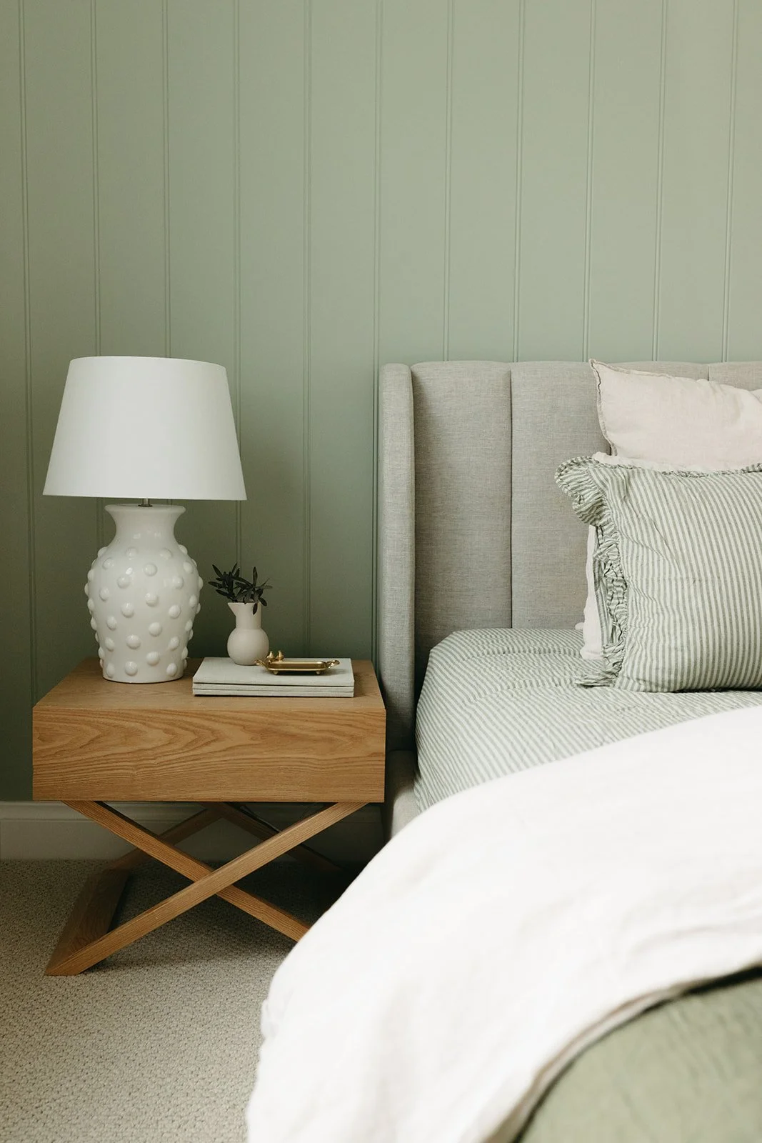 The design of the home started by me at home playing with ideas. I wanted this home to be suitable for all seasons, as it’s forever - we are never moving from here, and hope to bring our children onto the block in the future, with two perfect parcels already drawn up in my head just below our home. I wanted the house to have a standard country frontage, but with an eastern view, northern entry I was conscious of putting the backyard to the south, as I know how cold those winds are. Instead we opted for a side yard, fencing off the garage from the main part of the home to keep in our dogs and small children from the driveway. A small criss cross gate welcomes you onto a beautiful brick path to our front door, an entry point I have only dreamed about. I wanted a welcoming space, with lights, two pots and an instagram worthy wreath spot. The duck egg blue front door was inspired by Rachel Parcells home in Utah.